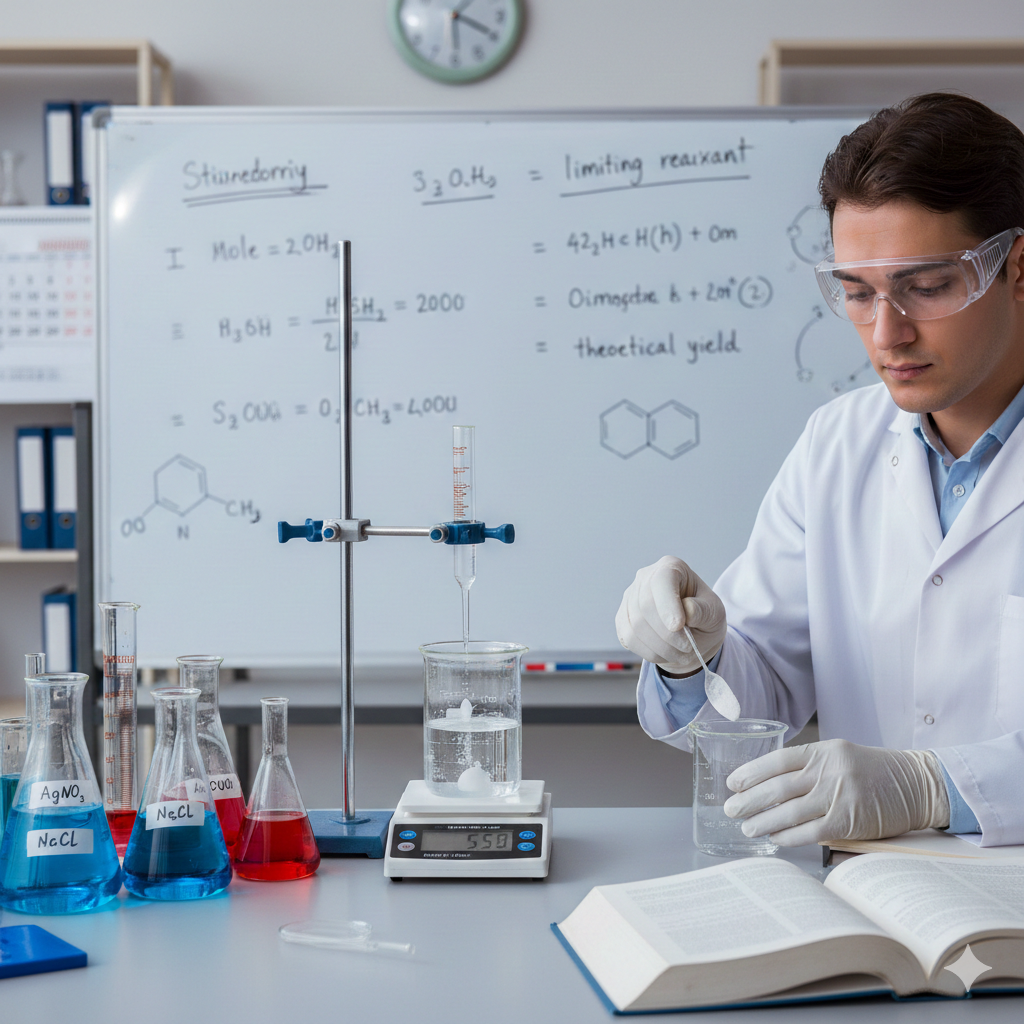 Estequiometría de una reacción, un término derivado de las palabras del griego antiguo stoicheion ("elemento") y metron ("medida"). En este curso, examinaremos cómo podemos utilizar las relaciones estequiométricas de las ecuaciones químicas balanceadas para determinar la cantidad de sustancias consumidas y producidas en las reacciones químicas.